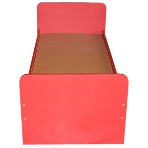 Описание: Цвет БУК или кремовый для основания кровати, спинки - цветные, цветная кромка ПВХ 0,4 мм и 2 мм. (производство Германия). Спинки с закругленными углами, кромка ПВХ 2 мм., спинки выполняют роль ножек кровати. Между царгами кровати 8 дополнительных планок для усиления, на которые кладется ДВП для матраса.