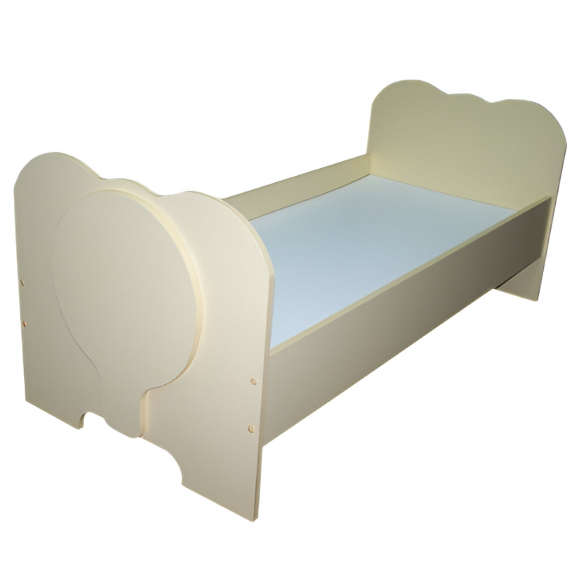 Описание: Цвет БУК или кремовый. Спинки выполнены в форме головы слона с дополнительной накладной деталью для объемности. Между царгами кровати 8 дополнительных планок для усиления, на которые кладется ДВП для матраса.