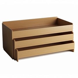 Детская 3-ярусная кровать - прекрасный выбор, особенно для малогабаритных комнат. Кровать выполнена из ЛДСП, все выступающие торцы проклеены травмобезопасной кромкой ПВХ и углы скруглены. Дно, в отличие от аналогичных моделей, производимых другими предприятиями, выполнено не из ДВП, а из фанеры, что значительно усиливает жесткость конструкции и увеличивает срок службы изделия.