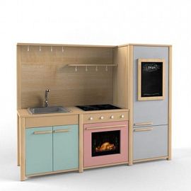 Для организации развивающих занятий в детском саду необходима игровая мебель. Отличным вариантом является стеллаж Кухня. Игровой модуль изготавливается из ЛДСП ярких оттенков.