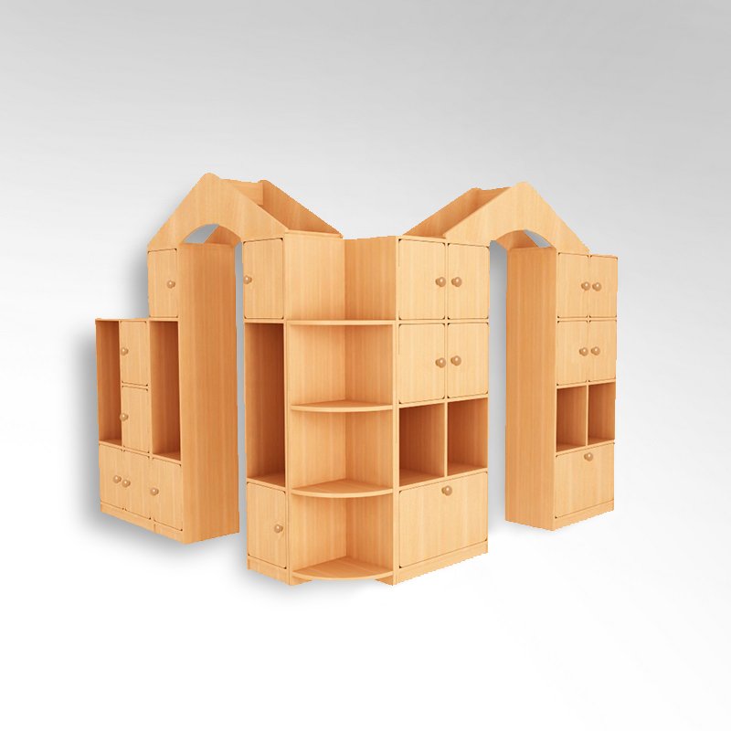Стенка «Городок» за счет модульной конструкции идеально впишется в любую игровую комнату. Благодаря яркому исполнению, сочетает в себе функциональность и развивающий элемент, позволяя размещать детские вещи, игрушки на полках соответствующих цветов. Каждый модуль может быть самостоятельным элементом декора и обстановки игровой комнаты в детском саду. В зависимости от необходимости и бюджета организации можно самостоятельно комплектовать и комбинировать любое количество секций.