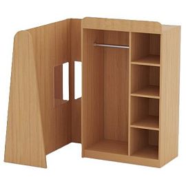 Уголок позволит детям почувствовать себя взрослыми, примеряя одежду и любуясь на свое отражение в зеркале. Подобно взрослым шкафам и гардеробам, уголок «Ряженья» имеет несколько полочек для вещей и обуви, перекладину для верхней одежды и зеркало.