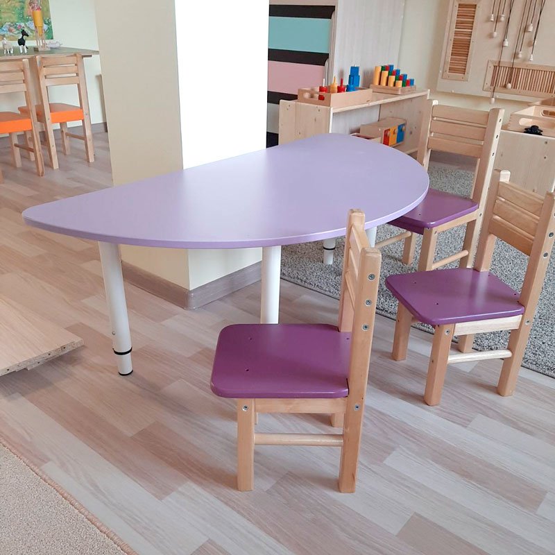 Яркий детский стол украсит любой уголок в Вашем детском саду. Столешница располагается на телескопических ножках, регулируемых по высоте. При производстве мебели для детского сада мы стараемся сделать её функциональной и максимально комфортной.
