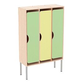 ЛДСП 16 мм, кромка ПВХ 0,4 и 1 мм. Фасады закругленные, ручка-радиус. Комплектуется в каждой секции одним двойным крючком для одежды и полкой для головных уборов. Размер: 310*320*1320 мм. Высота от пола до первой горизонтальной полки - 250 мм.