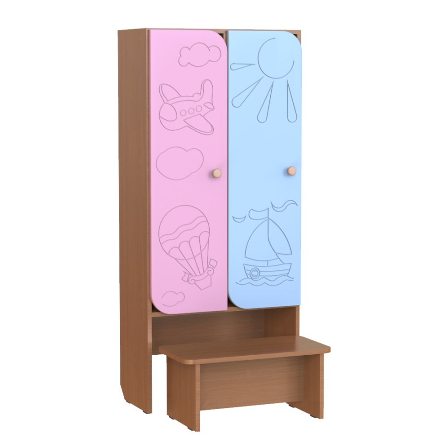 Шкаф детский 2-секционный со скамьей МДФ Путешествие ШФН-012