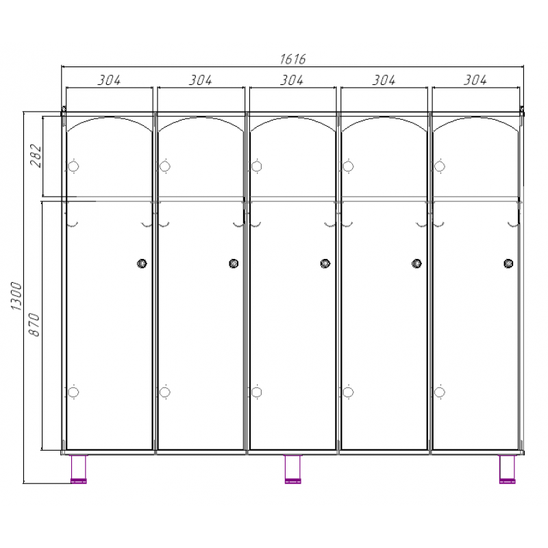 Данные шкафчики для детского сада предназначены для хранения одежды. Шкаф для детского сада исполняются в 3-, 4- и 5-секционных вариантах, выполненны из ЛДСП.