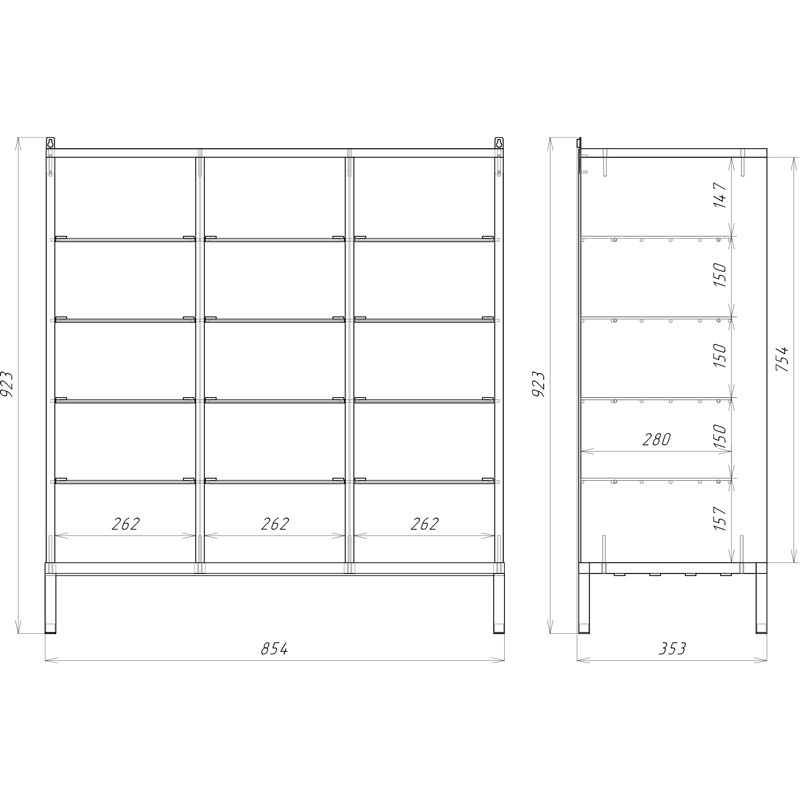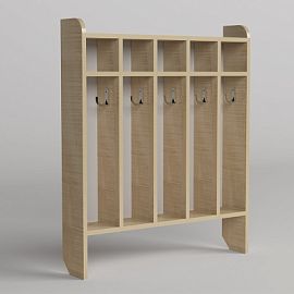 В детском саду малыши должны приучаться к порядку. Чтобы они не разбрасывали обувь по всему холлу, необходимо установить компактный шкаф. Предлагаем шкаф для обуви. Корпус изделия изготовлен из ЛДСП и разделен на 3 секции. В каждой секции по 5 полок из металлокаркаса. Между металлическими прутьями имеется свободное пространство, чтобы подошва высохла быстрее.