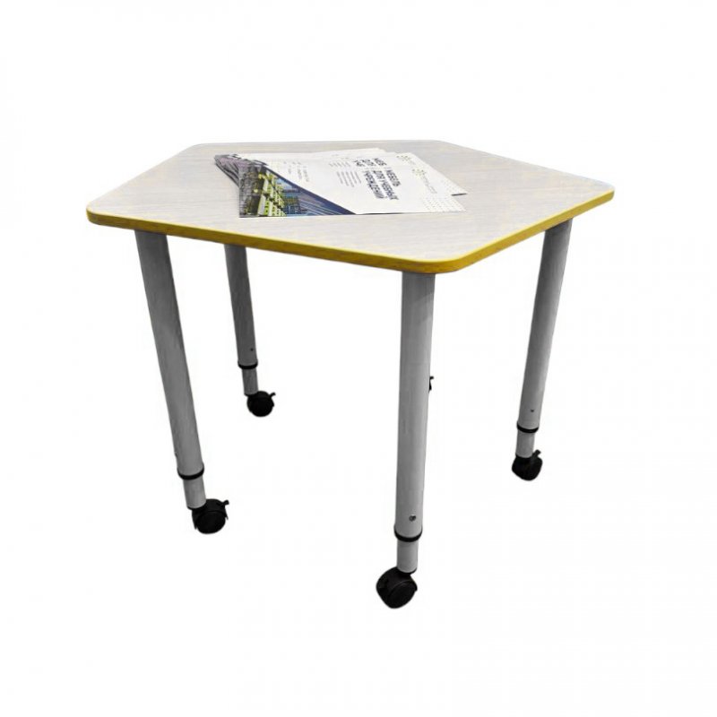 Стол состоит из столешницы и регулируемых по высоте (ростовая группа №3-№5) металлических опор.
