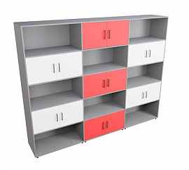 • Оригинальный и нестандартный многосекционный шкаф для хранения учебных пособий и различной литературы;
