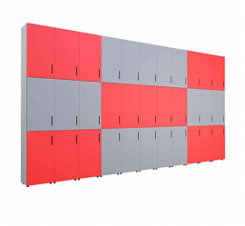 • Высота шкафа 3 метра (9 секций по 33 см). Ширина варьируется по желанию заказчика, для примера: на изображении ширина шкафа 5,5 метра (11 секций по 50 см).