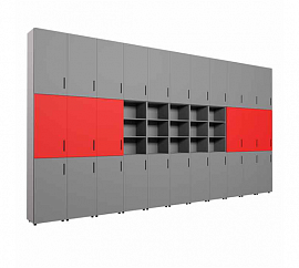 • Выполняется из надежной ЛДСП толщиной 22 мм и 16 мм. Цвет фасадов и полок можно выбрать самостоятельно: белый, красный, серый;