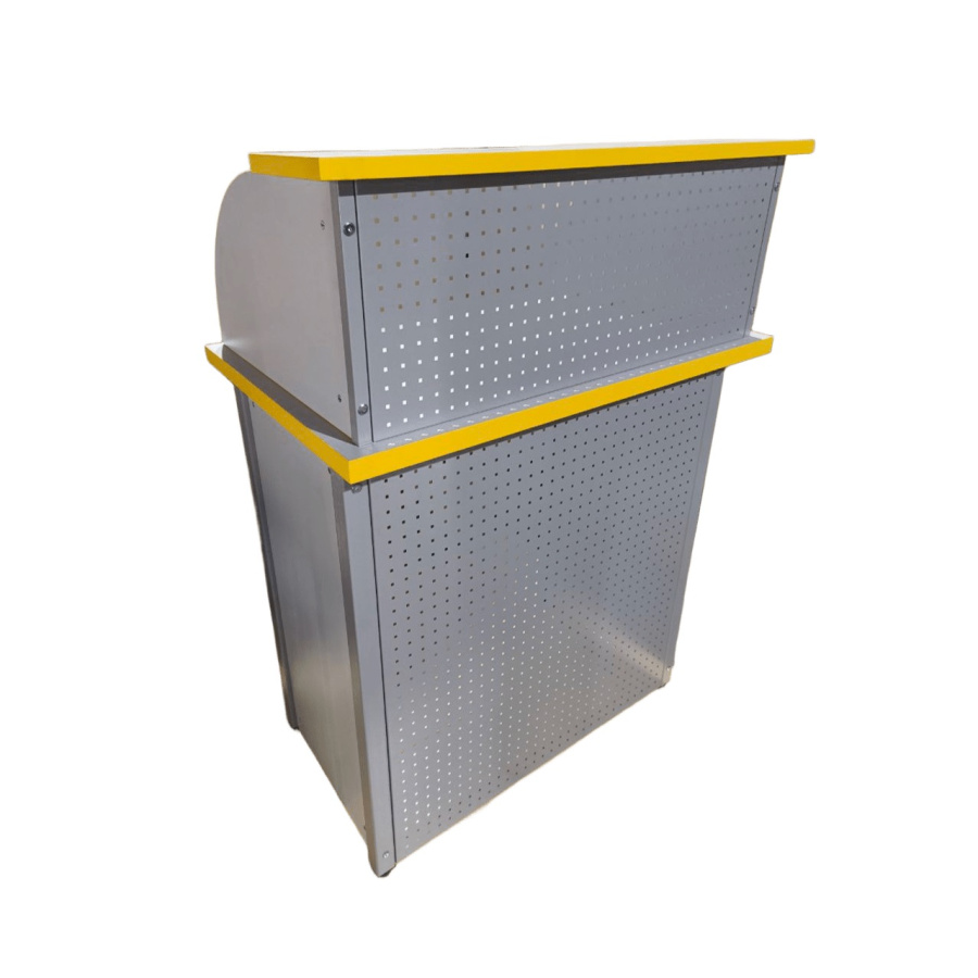 - Передняя стенка: нижняя часть и верхняя из окрашенного перфорированного металла RAL 7004.