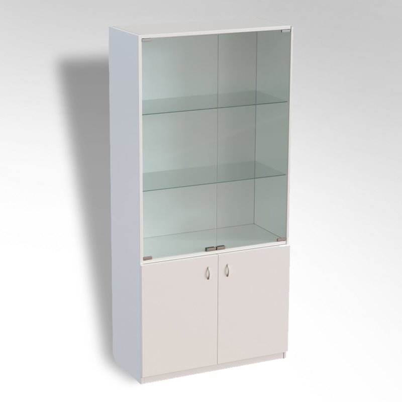 Каркас изготовлен из ЛДСП 16мм, кромка ПВХ 0,4 и 2мм. Фасад верх – из стекла прозрачного 4мм.