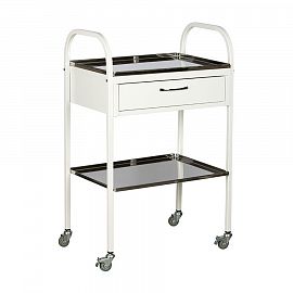 Полки и выдвижной ящик образуют 5 уровней хранения, изготовлены из высокопрочной стали, толщиной 0,8 мм. Поверхность полок устойчива к ударам и сколам, а также обработке дезсредствами. Ящики выдвигаются полностью, обеспечивая полноценный доступ к используемому пространству.