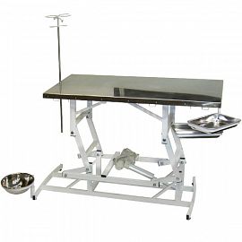 Ветеринарный стол СВУ-3 может использоваться как в качестве смотрового, так и в качестве операционного. Столешница из нержавеющей стали облегчает уборку и дезинфекцию. Стол имеет длинную столешницу 130 см и множество крючков и петель по краям.