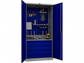 Предназначен для хранения инструментов, слесарных приспособлений и других изделий на предприятиях, мастерских, автосервисах.