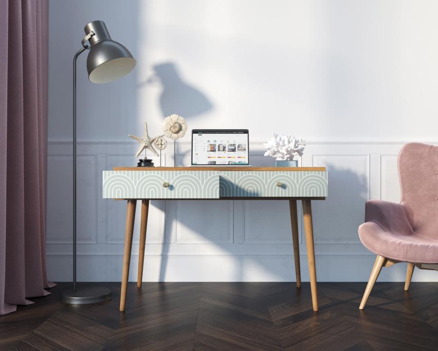 Рабочий стол "Berber" отлично впишется в детскую комнату или рабочий кабинет, но здесь стоит подобрать правильный принт. Два вместительных ящика на металлических направляющих, ноги из массива ясеня окрашенные итальянской морилкой, ниша под бумаги и мелочи, и все это в сочетании со скандинавским дизайном придадут интерьеру особый акцент.
