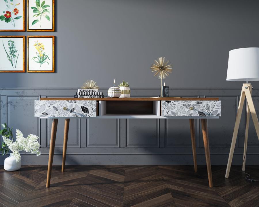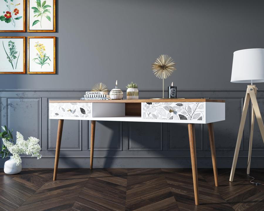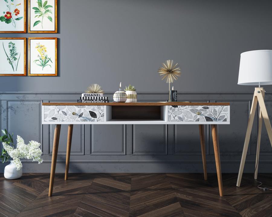 Рабочий стол "Berber" отлично впишется в детскую комнату или рабочий кабинет, но здесь стоит подобрать правильный принт. Два вместительных ящика на металлических направляющих, ноги из массива ясеня окрашенные итальянской морилкой, ниша под бумаги и мелочи, и все это в сочетании со скандинавским дизайном придадут интерьеру особый акцент.