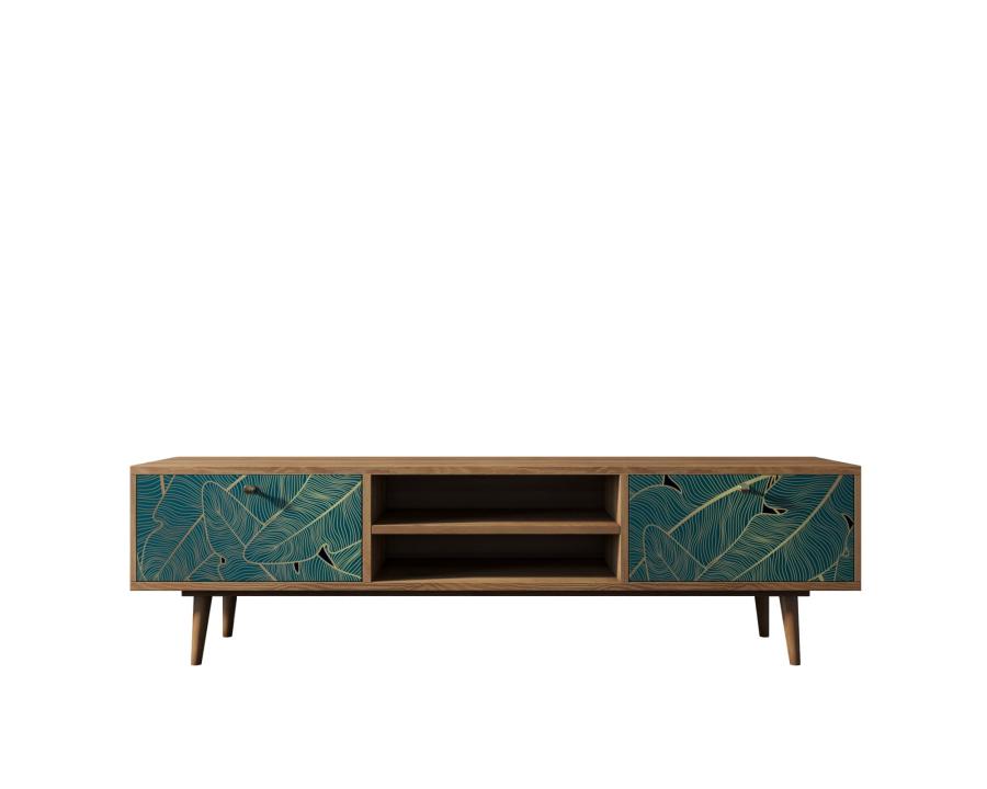 Комод под TV Berber имеет две дверцы украшенные дизайнерским принтом и центральную нишу разделенную съемной полкой. Ножки изготовлены из массива ясеня.