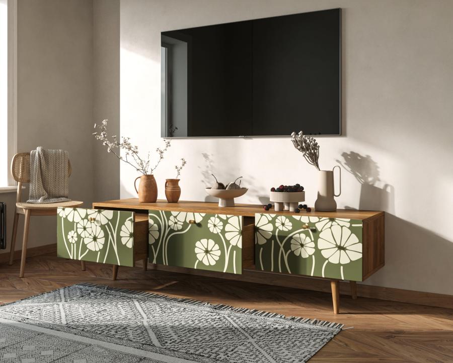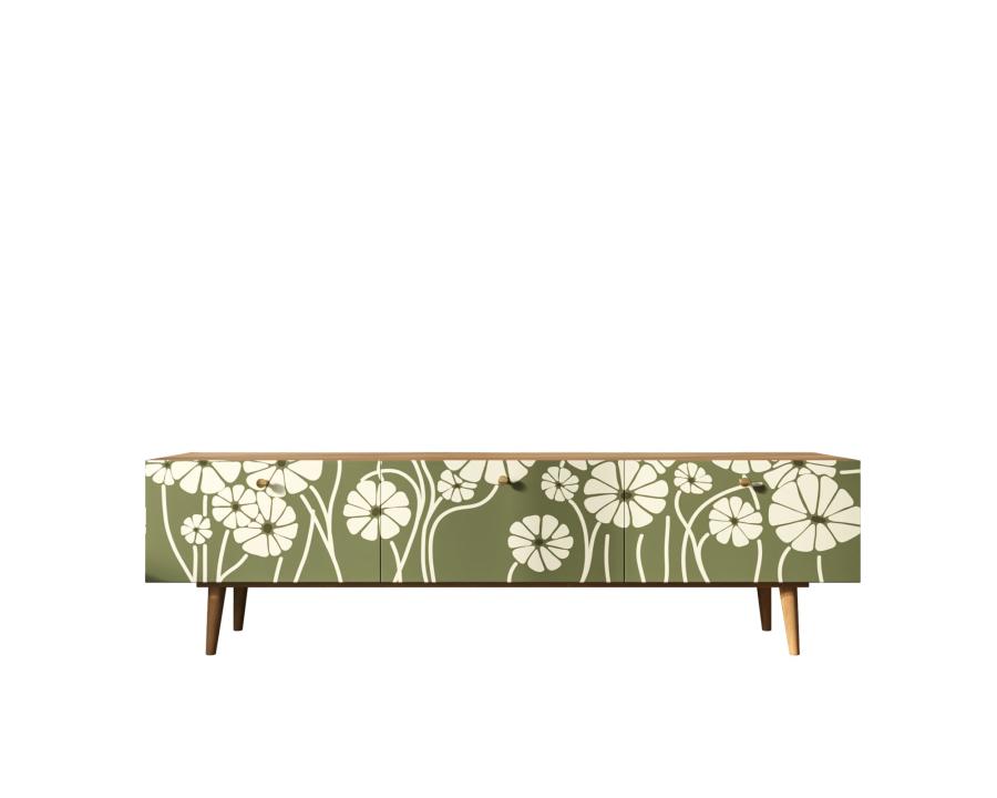 Комод под TV "Berber" имеет три глубоких и вместительных ящика на шариковых направляющих. Ширина комода 180 см, что позволяет достаточно эстетично смотреться с широкоформатными телевизорами. Яркий принт сделает комод акцентом любого интерьера.