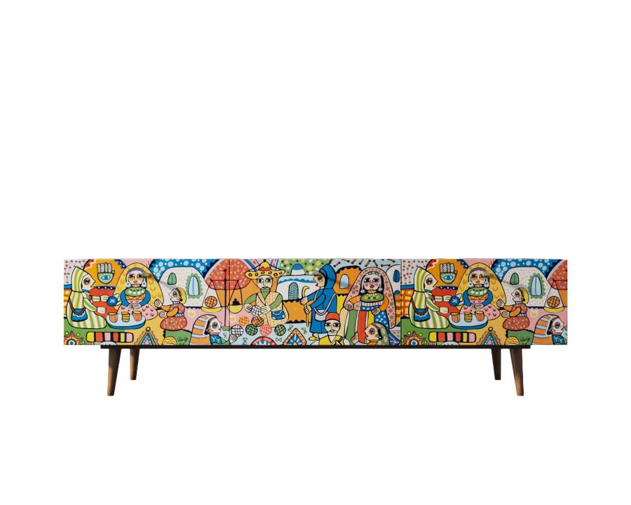 Комод под TV "Berber" имеет три глубоких и вместительных ящика на шариковых направляющих. Ширина комода 180 см, что позволяет достаточно эстетично смотреться с широкоформатными телевизорами. Яркий принт сделает комод акцентом любого интерьера.