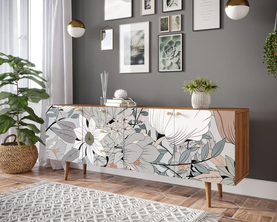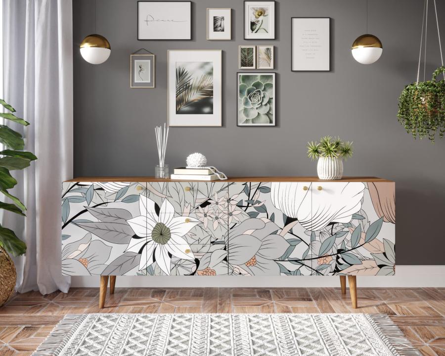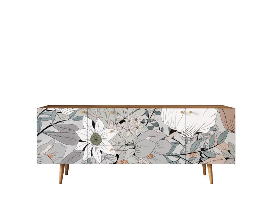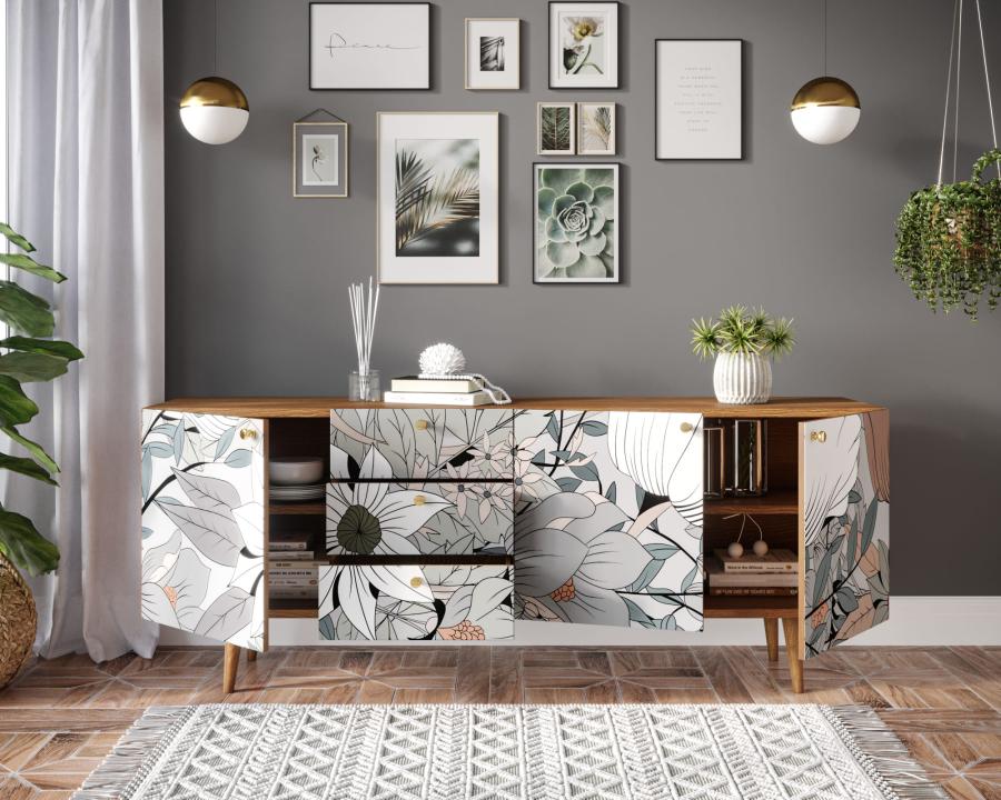 Комод "Berber" удлиненный принт 21. Удлиненный комод "Berber" снабжен тремя небольшими ящиками, а за дверцами пространство разделено полкой. Комод функционален и может служить тумбой под TV, дополнением к дивану в гостиной, который зонирует пространство комнаты или быть самостоятельным арт-объектом.