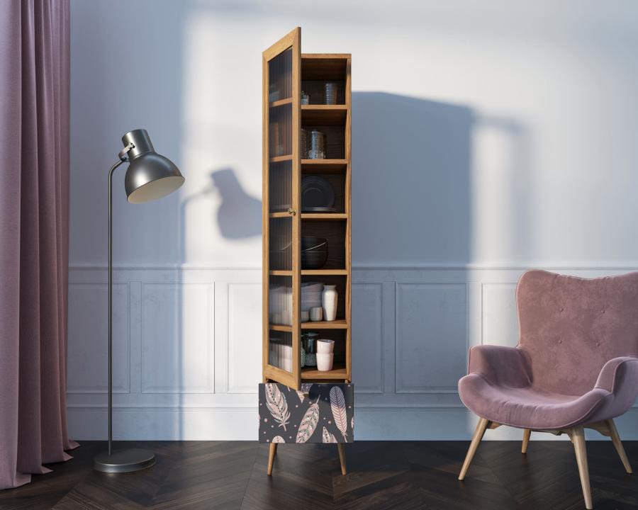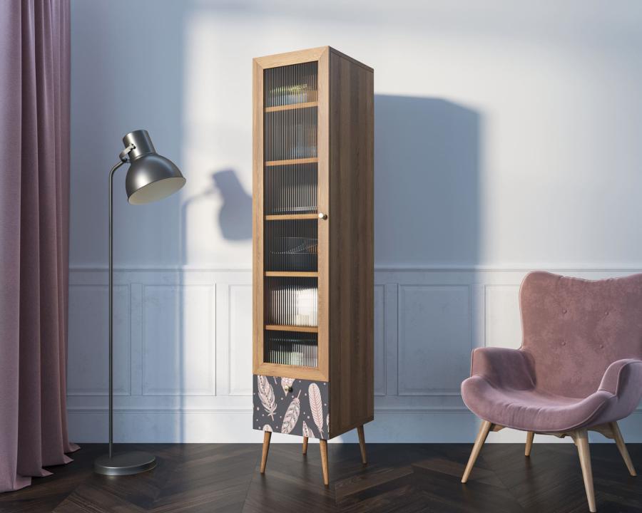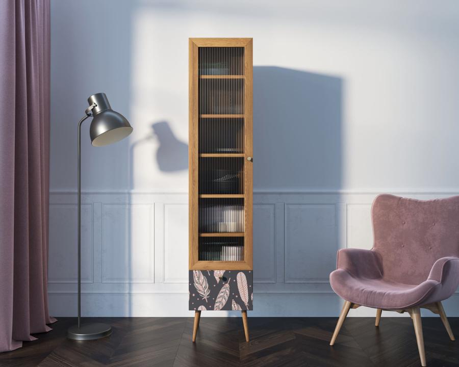 Буфет "Berber" одностворчатый с ящиком принт 40 арт BB48 отличается нестандартным внешним видом. На его корпус нанесен принт – изображены перья. Изделие выглядит оригинально и привлекает к себе внимание. Есть стеклянные вставки, которые выглядят стильно и современно. Дверь данного буфета оснащена стеклянной дверцей на петлях с доводчиком. Присутствует выдвижной ящик на стальных направляющих. В нём тоже удастся хранить различные вещи, которые необходимо скрыть от посторонних глаз. Корпус буфета выполнен из ЛДСП, а ножки – из массива ясеня. Мебель качественная и долговечная, поэтому ещё долго не придётся задумываться о её замене. Высота этого изделия составляет 190 см, а глубина – 45 см. Ширина буфета достигает 40 см. Он достаточно вместительный, но при этом занимает мало места в помещении. Можно купить буфет "Berber" одностворчатый с ящиком принт 40 арт BB48 в Санкт-Петербурге, чтобы дополнить интерьер помещения.