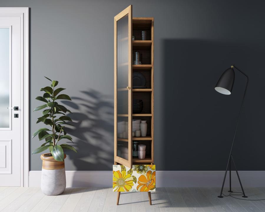 Стекло применяется в мебельном производстве в качестве конструкционного материала для изготовления столешниц, фасадов, полок; используют только прочное закаленное стекло.