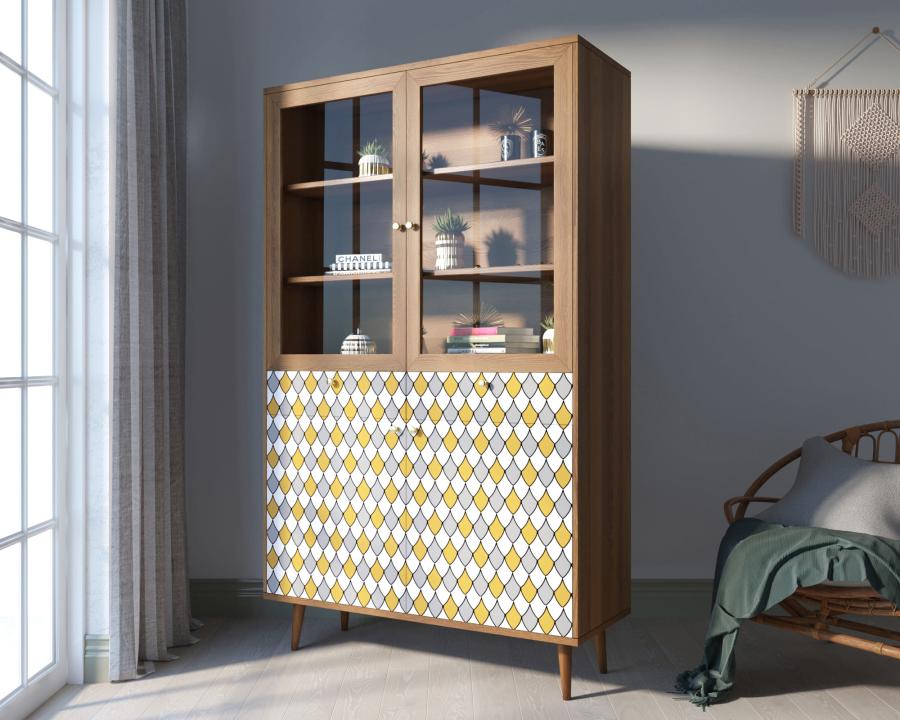 Стекло применяется в мебельном производстве в качестве конструкционного материала для изготовления столешниц, фасадов, полок; используют только прочное закаленное стекло.