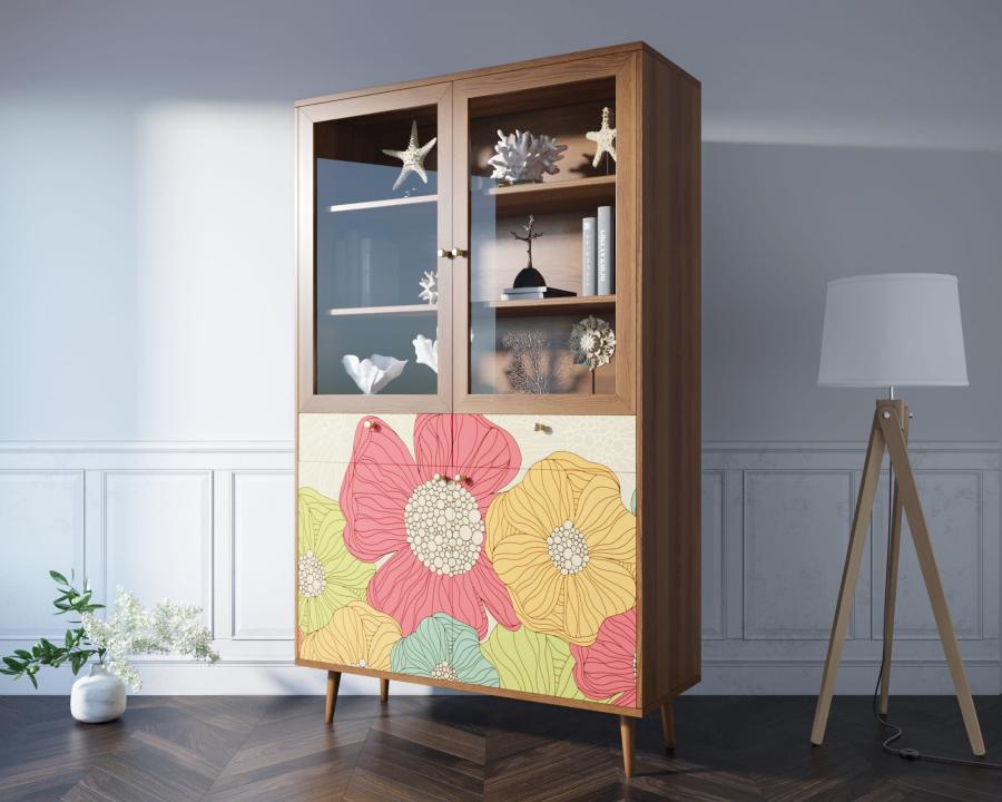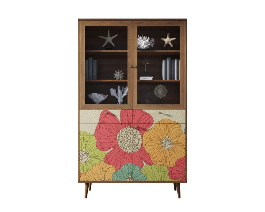 Буфет "Berber" имеет два выдвижных ящика на шариковых направляющих (могут быть заменены на доводчики по желанию). Низ буфета разделен на две секции, которые скрываются за двумя дверками, и полкой. Верхняя часть закрывается стеклянными дверцами, а на двух полках отлично расположится декор или кухонная утварь.