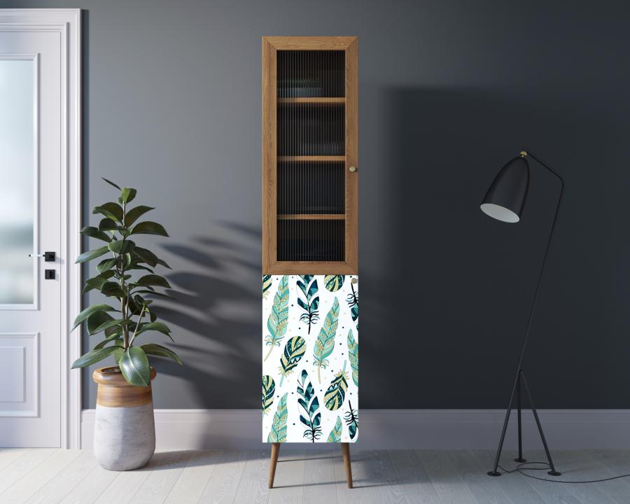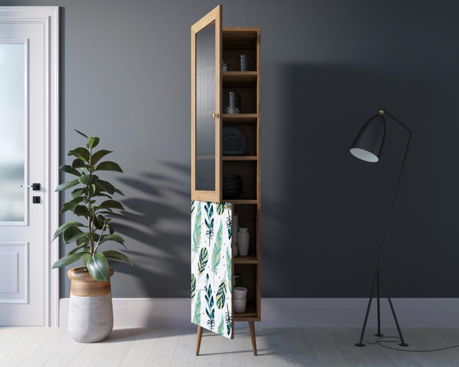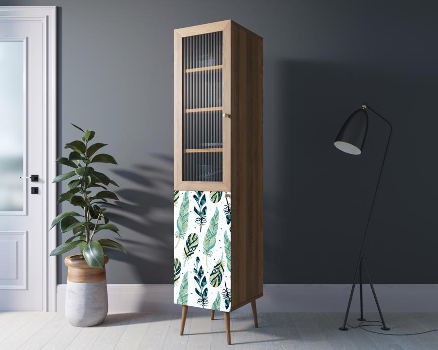 Стильный узкий буфет "Berber" со скандинавским принтом отлично впишется в современный интерьер столовой или кухни, гостиной или коридора. Благодаря наличию 6 прочных полок в нем можно разместить любые вещи. Полупрозрачная верхняя дверца позволит продемонстрировать свою коллекцию посуды или декора. Нижняя дверца, за которой скрываются две полки, выполнена из ЛДСП австрийской фирмы EGGER. На нее нанесен яркий принт путем УФ-печати, что делает его устойчивым к любым внешним воздействиям. Ножки узкого буфета Berber (принт 44) выполнены из массива ясеня и закреплены с помощью стальной пластины к корпусу.