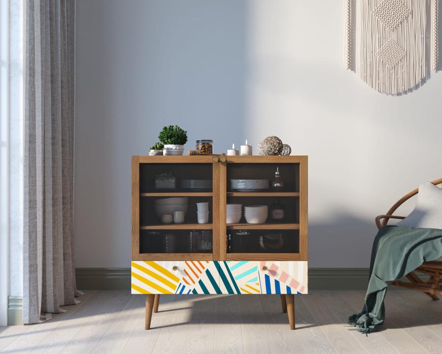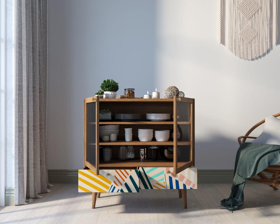 Стекло применяется в мебельном производстве в качестве конструкционного материала для изготовления столешниц, фасадов, полок; используют только прочное закаленное стекло.