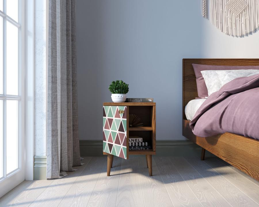Тумбочка "Berber" с дверкой имеет небольшую съемную полочку, которая зонирует внутреннее пространство. Выбирайте для себя подходящий принт и если в интерьере спальни нужна акцентная вещь, то тумбочка с дизайнерским принтом отличный для этого подойдет.