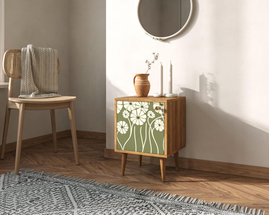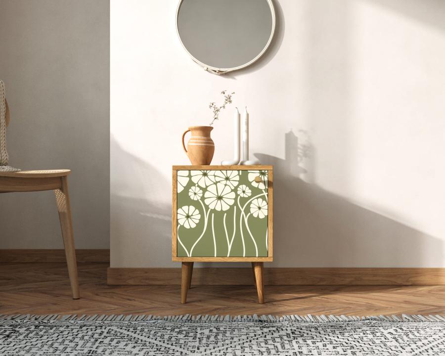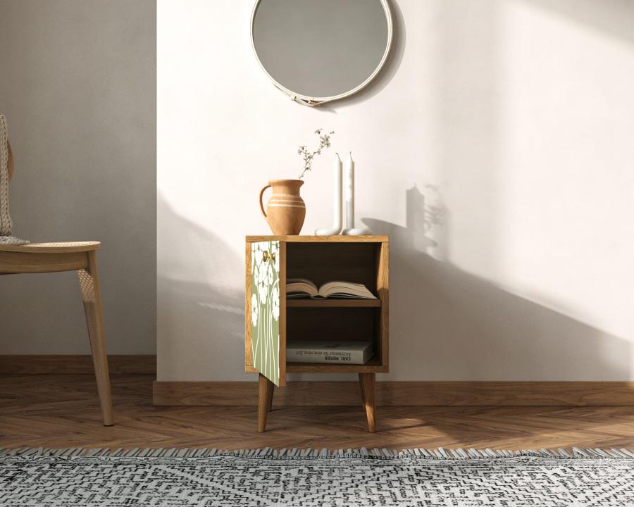 Тумбочка "Berber" с дверкой имеет небольшую съемную полочку, которая зонирует внутреннее пространство. Выбирайте для себя подходящий принт и если в интерьере спальни нужна акцентная вещь, то тумбочка с дизайнерским принтом отличный для этого подойдет.
