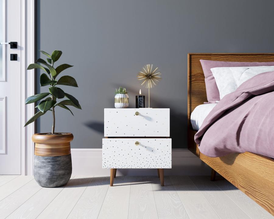 Тумбочка "Berber" имеет два вместительных ящика на металлических направляющих. Выбирайте для себя подходящий принт и если в интерьере спальни нужна акцентная вещь, то тумбочка с дизайнерским принтом отличный для этого подойдет.