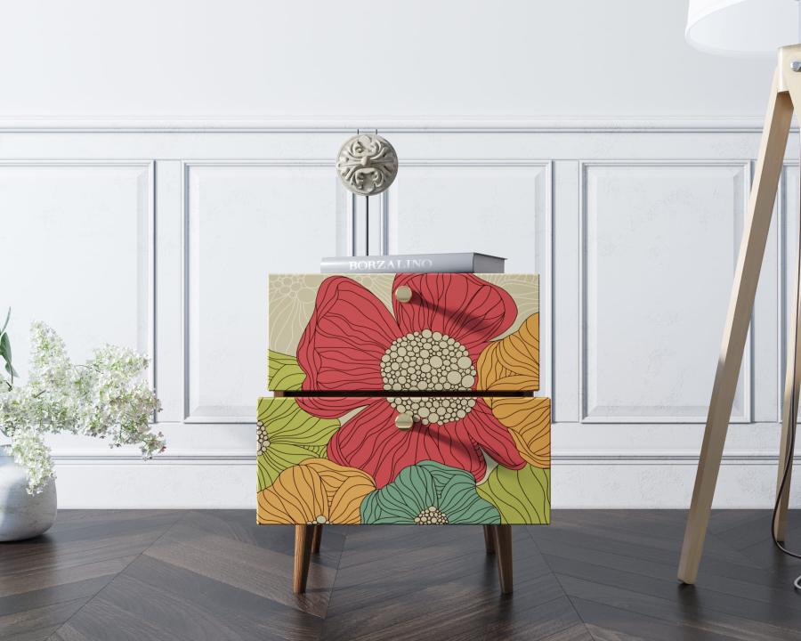 Тумбочка Berber с двумя ящиками 5 принт арт BB03/Print_05, разноцветная