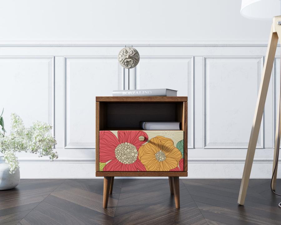 Тумбочка Berber с одним ящиком 5 принт арт BB06/Print_05, разноцветная