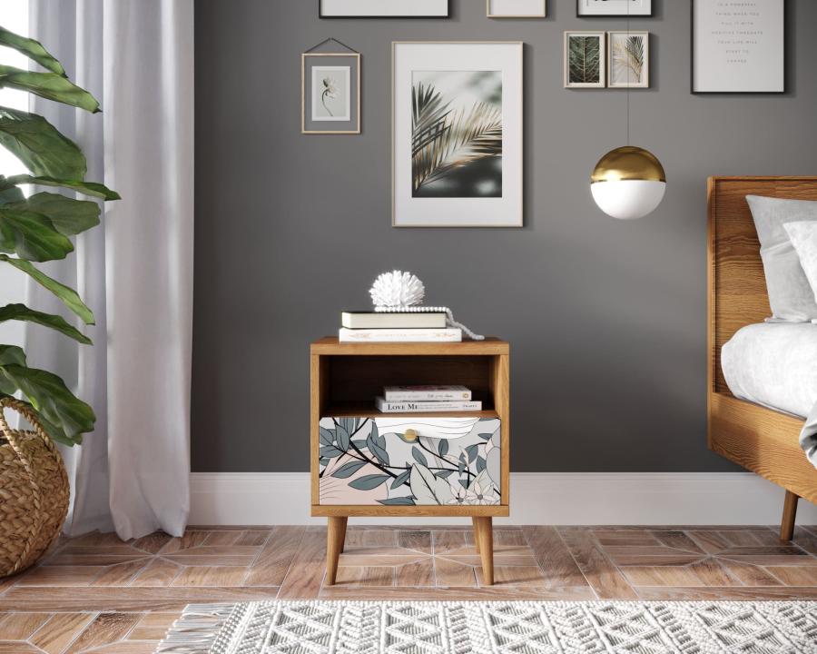 Тумбочка Berber с одним ящиком 50 принт арт BB06/Print_50, разноцветная