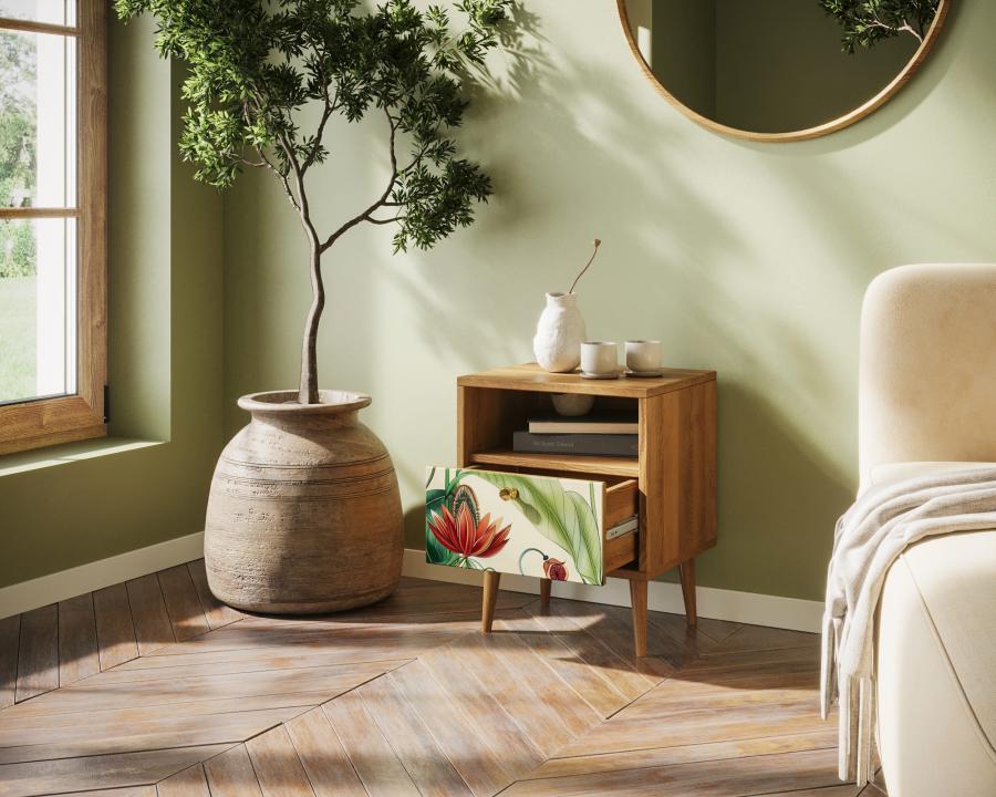 Тумбочка "Berber" имеет один вместительный ящик и небольшую нишу для мелочей. Выбирайте для себя подходящий принт и если в интерьере спальни нужна акцентная вещь, то тумбочка с дизайнерским принтом отличный для этого подойдет.