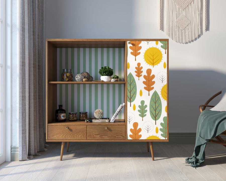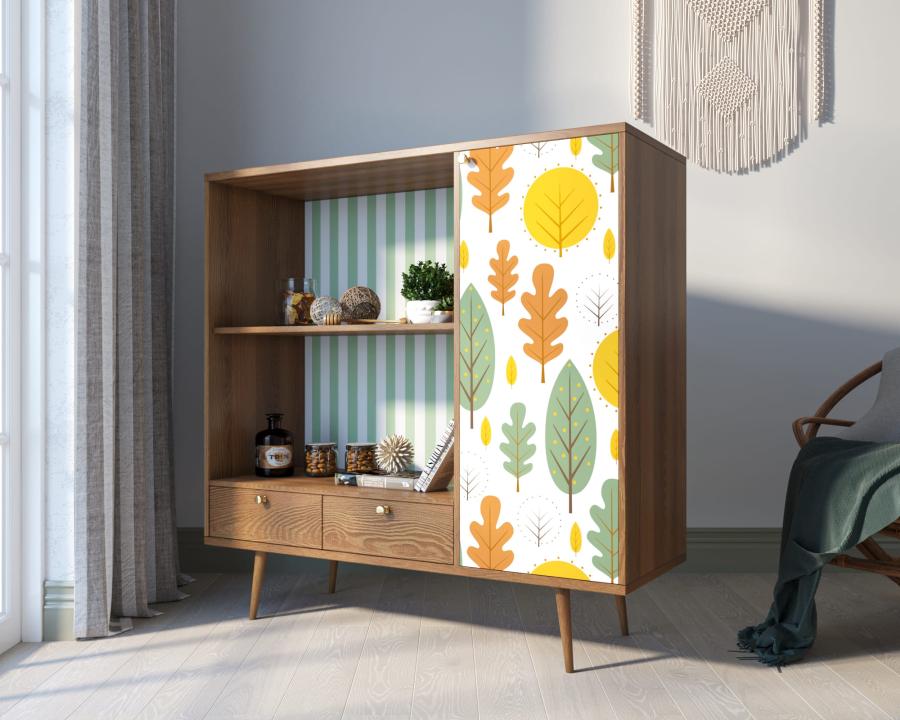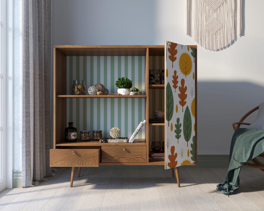 Небольшой стеллажик "Berber" с двумя ящиками и дверкой отлично впишется в гостиную и будет симпатичным акцентом в интерьере. Выберете подходящий принт, разместите на полках немного декора, свечей или книг и получите не только красивую, но и функциональную вещь.