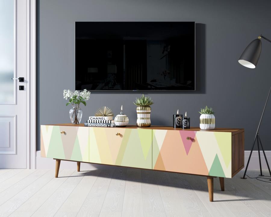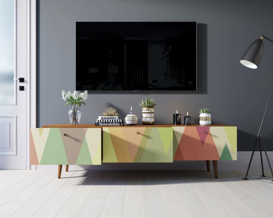 Комод под TV "Berber" имеет три глубоких и вместительных ящика на шариковых направляющих. Ширина комода 180 см, что позволяет достаточно эстетично смотреться с широкоформатными телевизорами. Яркий принт сделает комод акцентом любого интерьера.