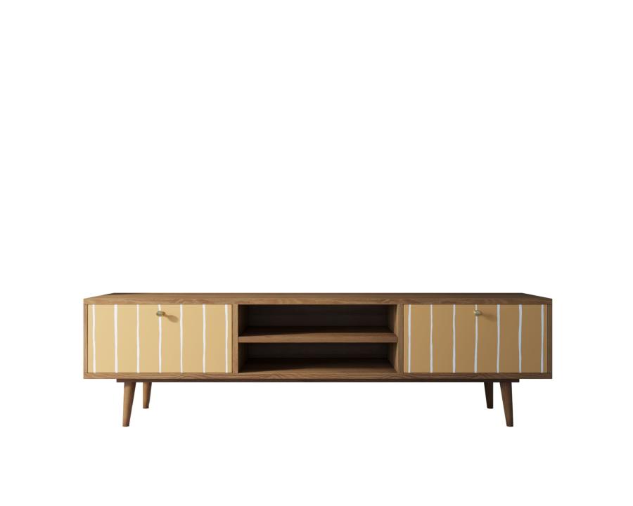 Комод под TV Berber имеет две дверцы украшенные дизайнерским принтом и центральную нишу разделенную съемной полкой. Ножки изготовлены из массива ясеня.
