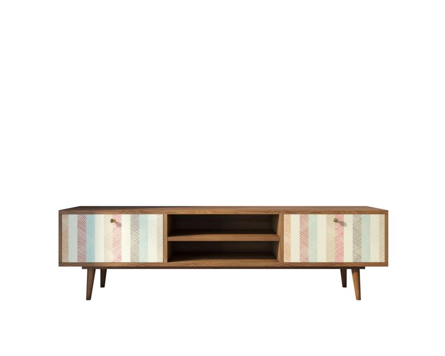 Комод под TV Berber имеет две дверцы украшенные дизайнерским принтом и центральную нишу разделенную съемной полкой. Ножки изготовлены из массива ясеня.