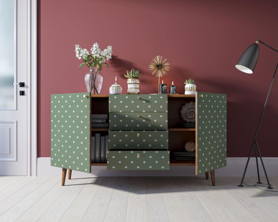 Комод "Berber" с ящиками 12 принт. Комод "Berber" снабжен 4 вместительными ящиками на шариковых направляющих (по желанию можем поставить доводчики), а за дверками пространство разделено двумя съемными полками. Комод функционален и отлично подойдет для гостиной, в виде консоли под ТВ, спальни, или прихожей.