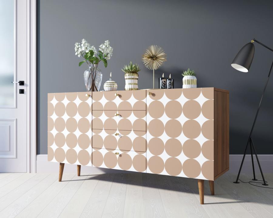 Комод "Berber" с ящиками 17 принт. Комод "Berber" снабжен 4 вместительными ящиками на шариковых направляющих (по желанию можем поставить доводчики), а за дверками пространство разделено двумя съемными полками. Комод функционален и отлично подойдет для гостиной, в виде консоли под ТВ, спальни, или прихожей.