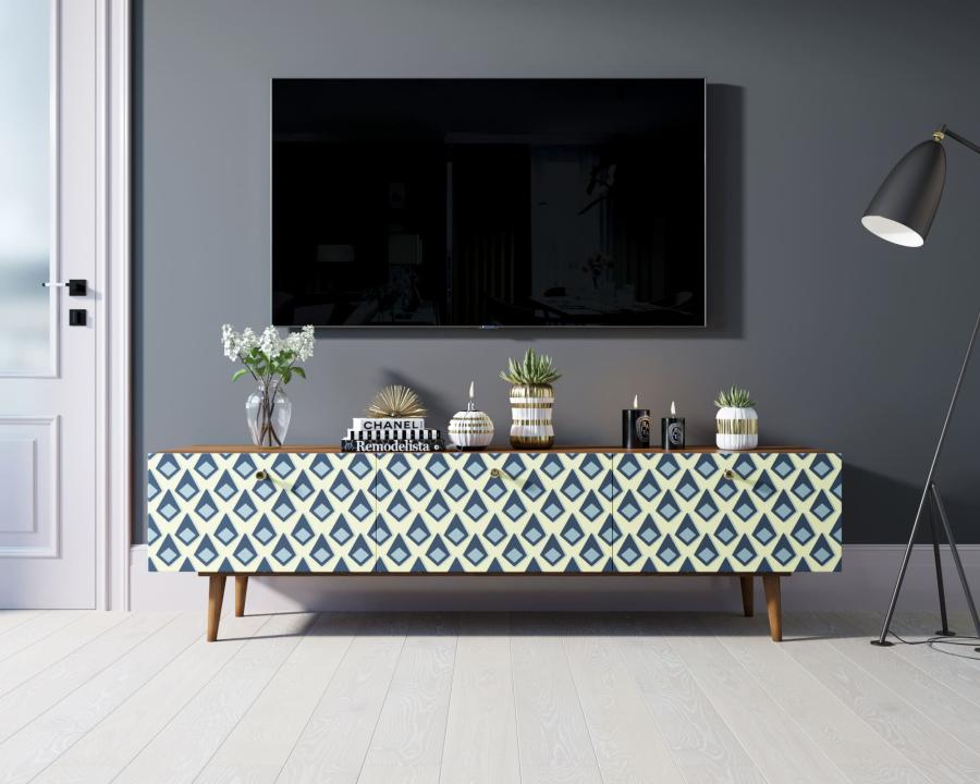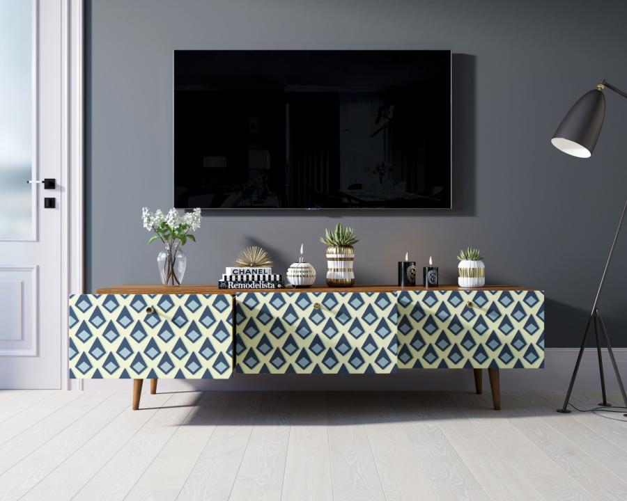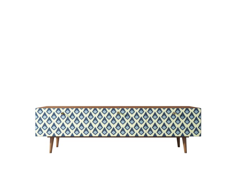 Комод под TV "Berber" имеет три глубоких и вместительных ящика на шариковых направляющих. Ширина комода 180 см, что позволяет достаточно эстетично смотреться с широкоформатными телевизорами. Яркий принт сделает комод акцентом любого интерьера.