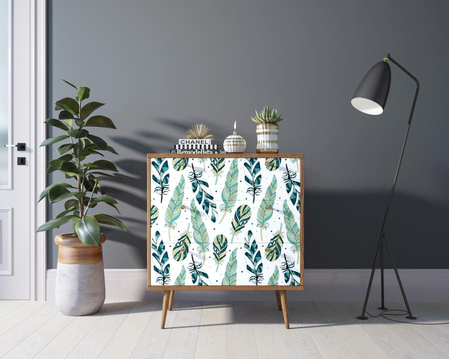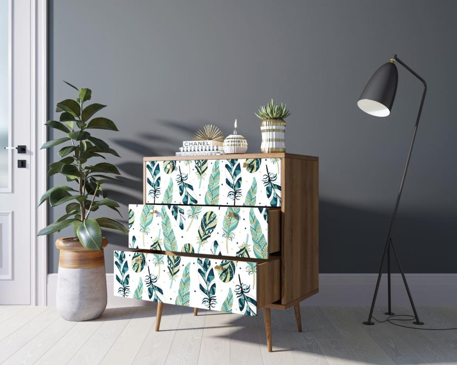 Комод "Berber" три ящика 44 принт выполнен из ЛДСП известной фирмы EGGER, при этом его ножки изготовлены из массива ясеня, что придает конструкции большей прочности и устойчивости. Яркий принт в белом и зеленых тонах позволит освежить обстановку, придать интерьеру больше привлекательности и стиля. Он наносится на фасады специальными УФ-чернилами, поэтому с годами рисунок не выцветает. Прочные ящики оснащены шариковыми направляющими, благодаря чему они могут выдвигаться полностью. Сам комод "Berber" имеет компактные размеры, поэтому его можно использовать в прихожей, гостиной или в спальне любой площади.