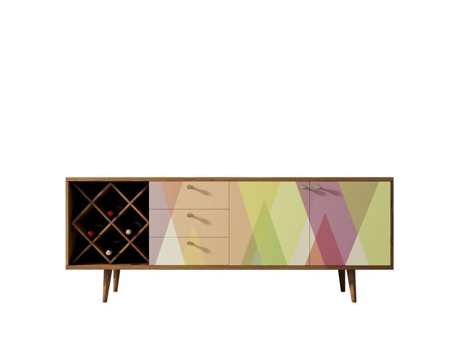Комод "Berber" удлиненный с бутылочницей 16 принт. Удлиненный комод "Berber" снабжен бутылочницей, тремя небольшими ящиками, а за дверцами пространство разделено полкой. Комод функционален и может служить тумбой под TV, дополнением к дивану в гостиной, который зонирует пространство комнаты или быть самостоятельным арт-объектом.