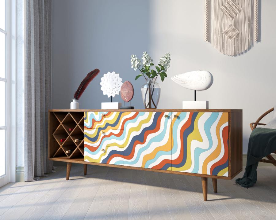 Комод "Berber" удлиненный с бутылочницей принт 21. Удлиненный комод "Berber" снабжен бутылочницей, тремя небольшими ящиками, а за дверцами пространство разделено полкой. Комод функционален и может служить тумбой под TV, дополнением к дивану в гостиной, который зонирует пространство комнаты или быть самостоятельным арт-объектом.