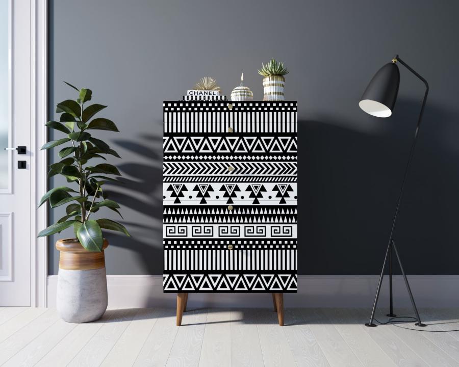 Комод высокий "Berber" принт 19. Высокий комод "Berber" имеет 5 выдвижных ящика на металлических направляющих. Комод достаточно высокий и узкий, что позволяет его применять практически везде, так как он не займет много места - спальня, гостиная, прихожая или в детской. А ящики позволят навести порядок и спрятать все мелочи за стильный принт.
